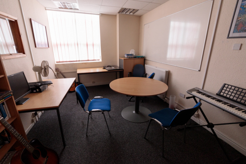 This cosy little room houses an array of entertainment. You will find our books and jigsaws which you are welcome to borrow, the keyboards and guitars. Ideal for peer support for those preferring a small space.